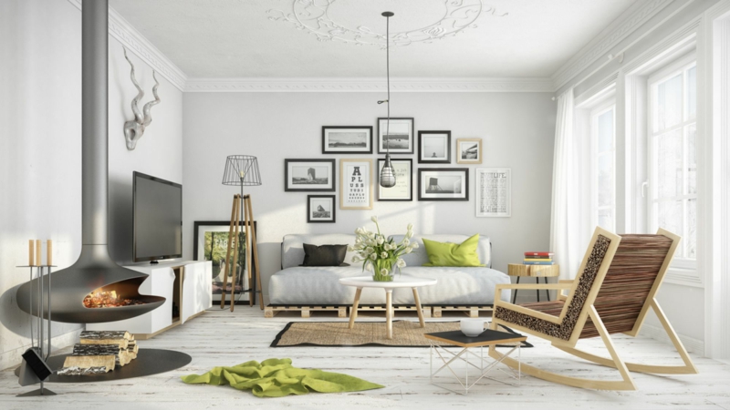 1. Die Mitte als Zentrum des Raumes sollte frei bleiben. Deswegen macht es Sinn, dass du hier einen schönen Teppich oder einen kleinen Couchtisch platzierst. Unser Blick braucht Ruhe, die er hier findet.
