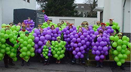 Zaubere dir aus ein paar Luftballons ein außergewöhnliches Kostüm. Am besten ziehst du ein gleichfarbiges Shirt und Hose oder Leggings an. Die Ballons werden dann am Endstück mit Sicherheitsnadeln angeheftet.