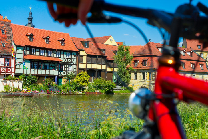 Der idyllische Radweg führt immer am Mainufer entlang. Er ersteckt sich über 600 Kilometer und verläuft durch die historischen fränkischen Städte, wie Bayreuth, Bamberg und Würzburg. Er startet im Fichtelgebirge und führt durch malerische Regionen, wie die Fränkische Schweiz und den Steigerwald
