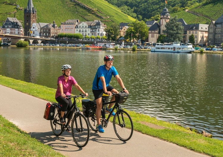Der Mosel-Radweg beginnt an der Quelle der Mosel in den französischen Vogesen und endet an der Rheinmündung bei Koblenz. Auf einer Strecke von etwa 310 Kilometern führt der kurvenreiche Weg durch das schöne Moseltal, vorbei an romantischen Burgen und malerischen Weingärten.