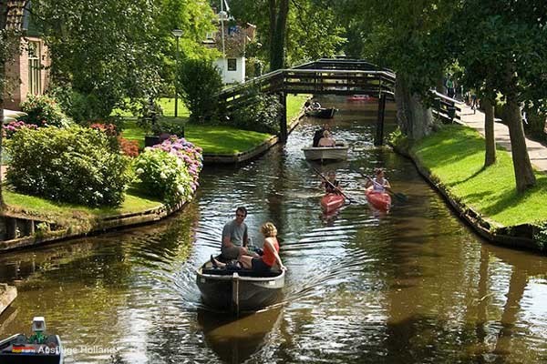 Im idyllischen Dörfchen Giethorn gibt es keine Autos. Das auf vielen kleinen Inselchen gebaute Örtchen hat aber viele malerische Kanäle, auf denen du gemütlich mit dem Boot zwischen liebevoll gestalteten Reetdach-Häusern hindurch schippern kannst.