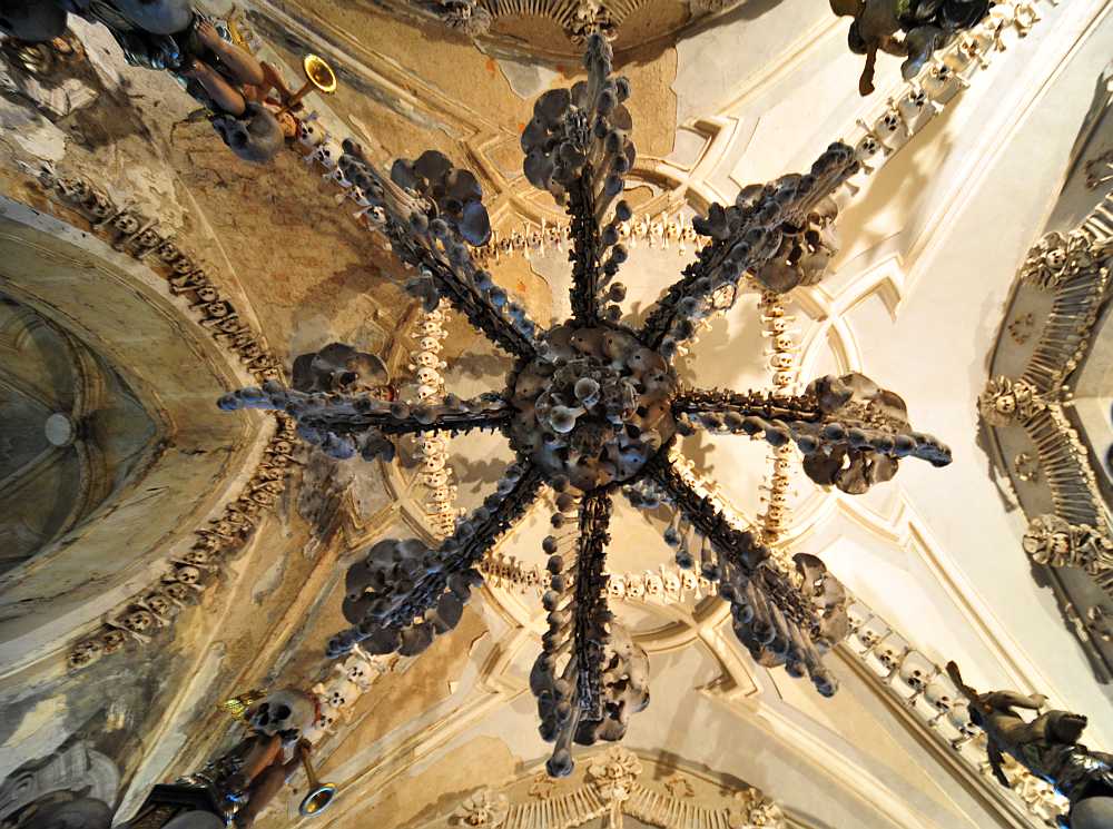 Für den Bau der Friedenskappelle aller Heiligen, wie die Knochenkirche offiziell genannt wird, mussten 20.000 Skelette exhumiert werden, die anschließend beim Bau mit integriert wurden. Ob sie wohl geahnt haben, was mit ihren Überresten noch so alles passieren würde?