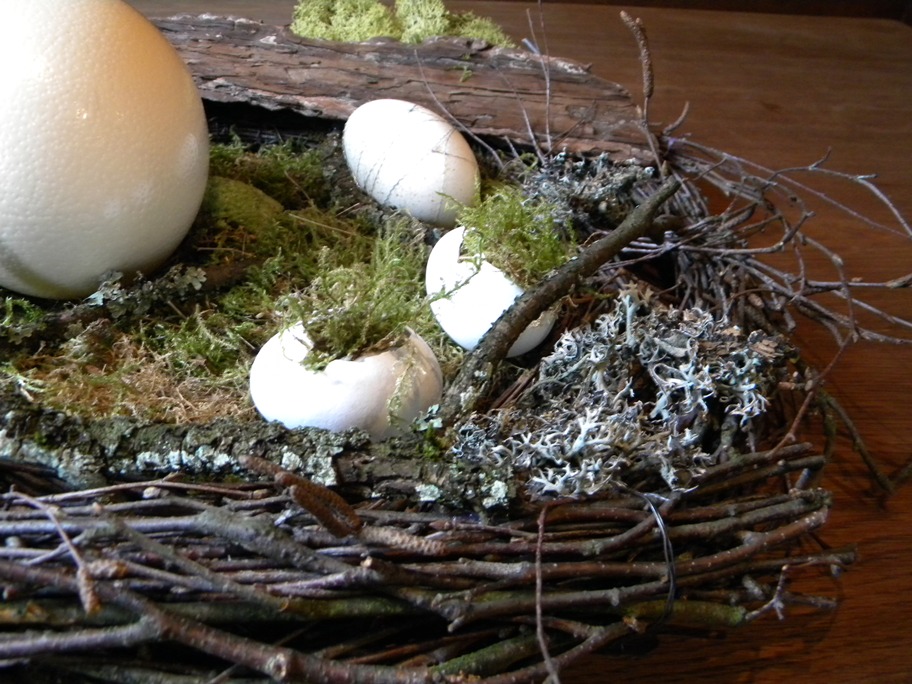 Besonders die helle Rinde der Birke macht sich in Kombination mit Eiern, Federn, Zweigen und Moos ganz wunderbar.